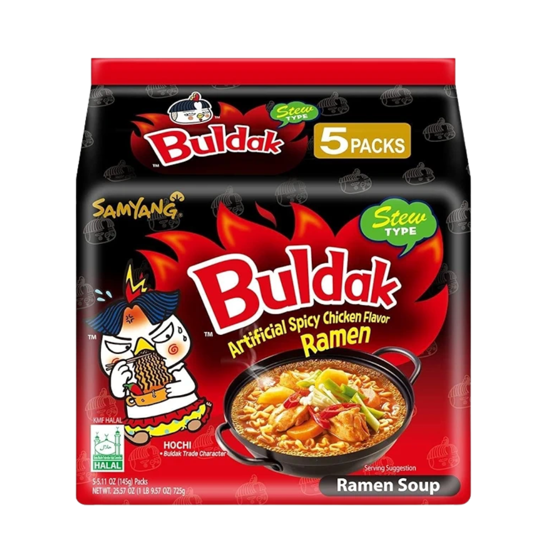 Buldak Stew Hot Chicken Flavor Ramen 725G is a premium instant noodle pack with rich, spicy chicken stew flavor. Ideal for quick meals, it delivers bold taste and satisfying texture in minutes. Hygienically packed to maintain freshness and quality, making it convenient for UAE kitchens.