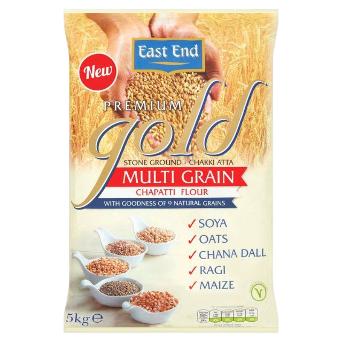 East End Gold Multigrain Atta 10KG is premium quality wheat flour blended with nutritious grains for healthy and fiber-rich chapatis, rotis, and parathas. Ideal for daily meals, it enhances taste, texture, and nutrition. Hygienically packed to maintain freshness and superior quality for UK kitchens.