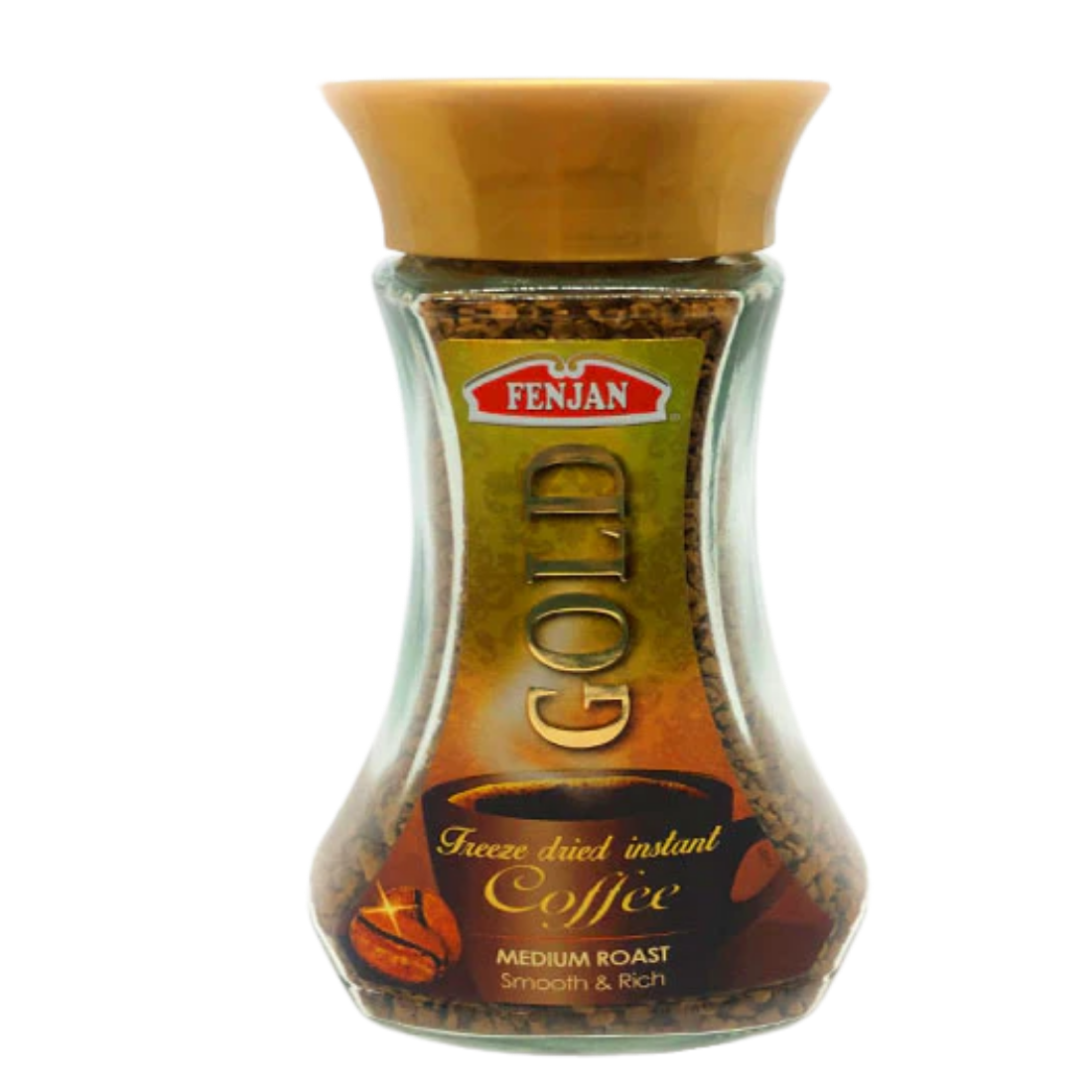 Fenjan Gold Coffee 100G delivers a smooth, rich, and well-balanced coffee flavour with an inviting aroma. Easy to prepare and perfect for daily coffee breaks, it dissolves quickly for a consistent cup every time. Hygienically packed to preserve freshness, suitable for everyday use in UK households.