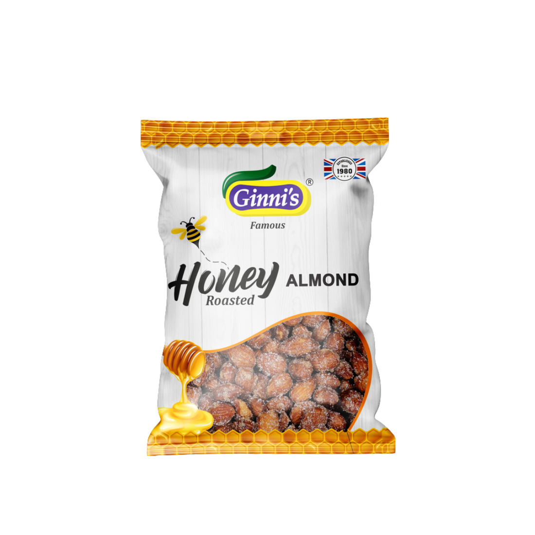 Ginni Honey Roasted Almonds 110G are crunchy almonds coated with a sweet honey glaze, offering a delicious and healthy snack. Perfect for munching, gifting, or adding to desserts. Hygienically packed to preserve freshness and taste, making them a favorite choice for UAE households.