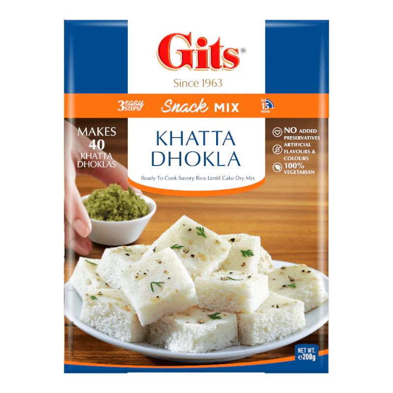 Gits Khatta Dhokla 200G is an instant mix made from premium quality rice and lentils to prepare traditional sour Gujarati-style khatta dhokla. Easy to prepare with authentic taste and soft texture, it is hygienically packed to ensure freshness and consistent quality for UK households.
