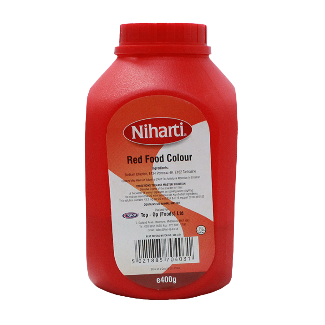 Niharti Red Food Colour 400G is a premium food-grade colouring suitable for sweets, desserts, bakery items, and festive dishes. It provides a strong, vibrant red shade with consistent results while keeping original taste intact. Hygienically processed and packed to ensure safe use and reliable colour quality for UK kitchens.