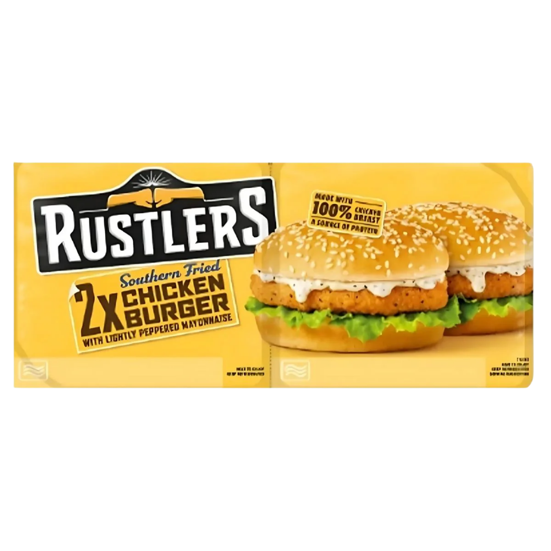 Rustlers 2× Chicken Burgers 254G ×2 are made with tender chicken patties served in soft buns with classic sauce. Ready in minutes, they offer a quick and tasty meal option for busy days. Conveniently packed to retain freshness, making them ideal for easy lunches or dinners in UK households.