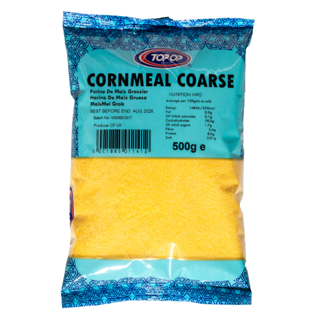 Top Op Cornmeal Coarse 500GM is made from high-quality corn, coarsely ground to provide rich texture and authentic taste. Ideal for preparing porridge, breads, and traditional dishes, it cooks evenly and retains natural flavor. Hygienically packed to ensure freshness and quality, making it suitable for everyday cooking in UAE kitchens.