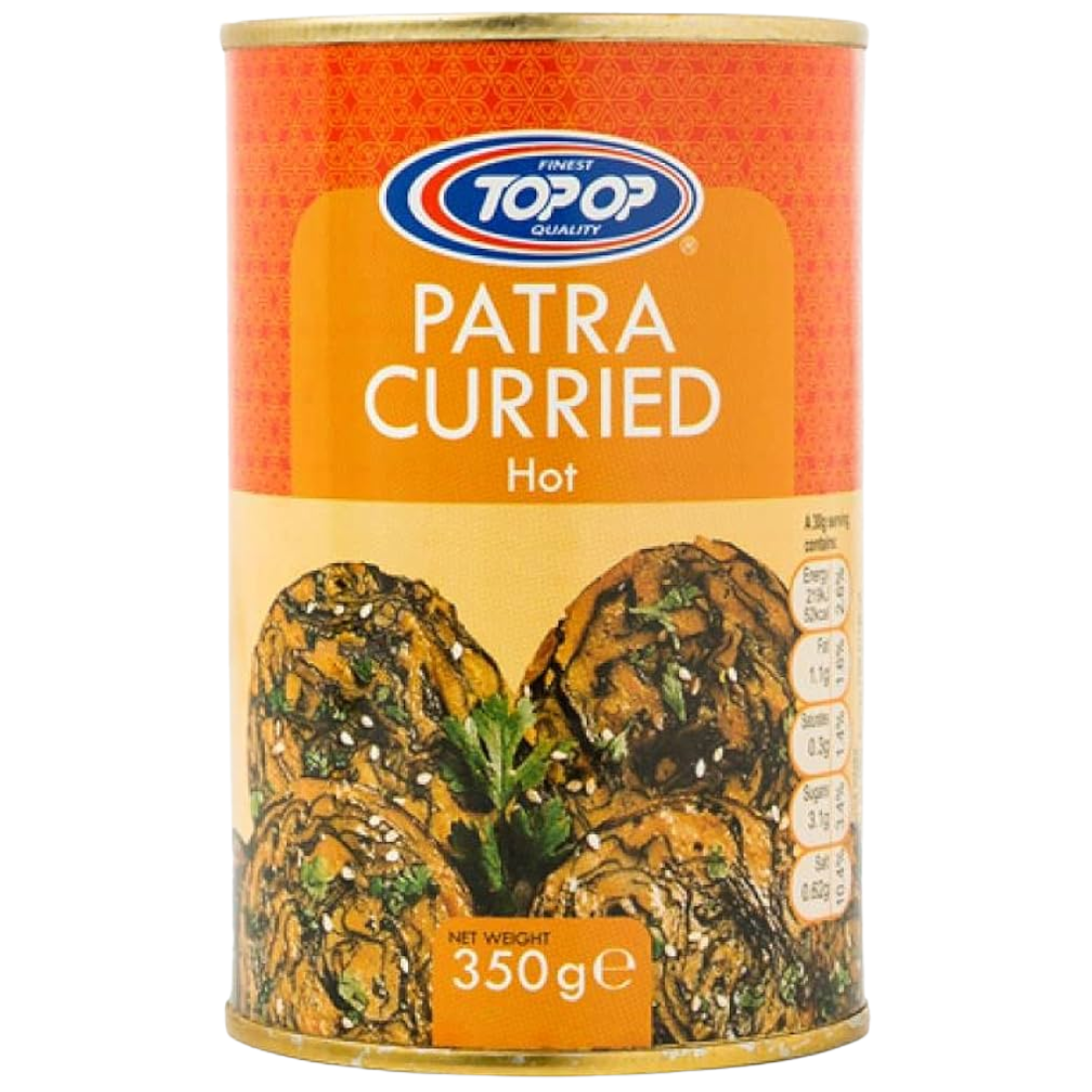 Top Op Patra Curried Hot 350G features tender colocasia leaves cooked in a spicy, flavorful curry. Perfect as a ready-to-eat snack, side dish, or appetizer, it delivers authentic taste and heat. Hygienically packed to maintain freshness and quality, making it convenient for quick meals in UAE kitchens.